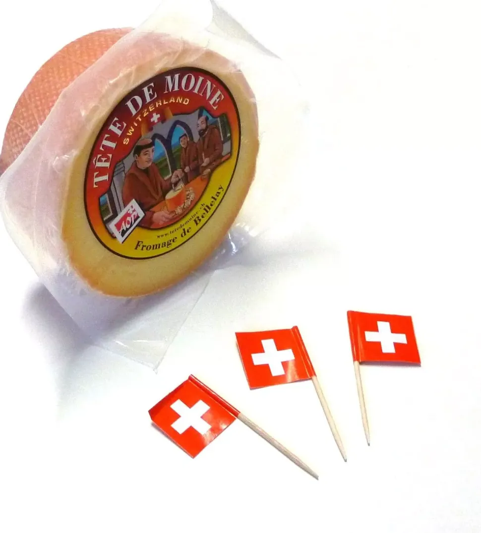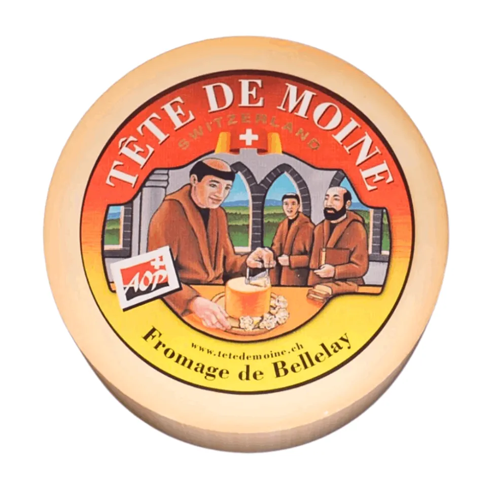 Tête de Moine, or “Monk’s Head Cheese,” is a traditional Swiss cheese from the Bellelay region in the Bernese Jura. Made from raw cow’s milk, it follows strict PDO (Protected Designation of Origin) guidelines, ensuring authentic quality and heritage. The cheese is cylindrical in shape and semi-hard, with a fine, melt-in-your-mouth texture.